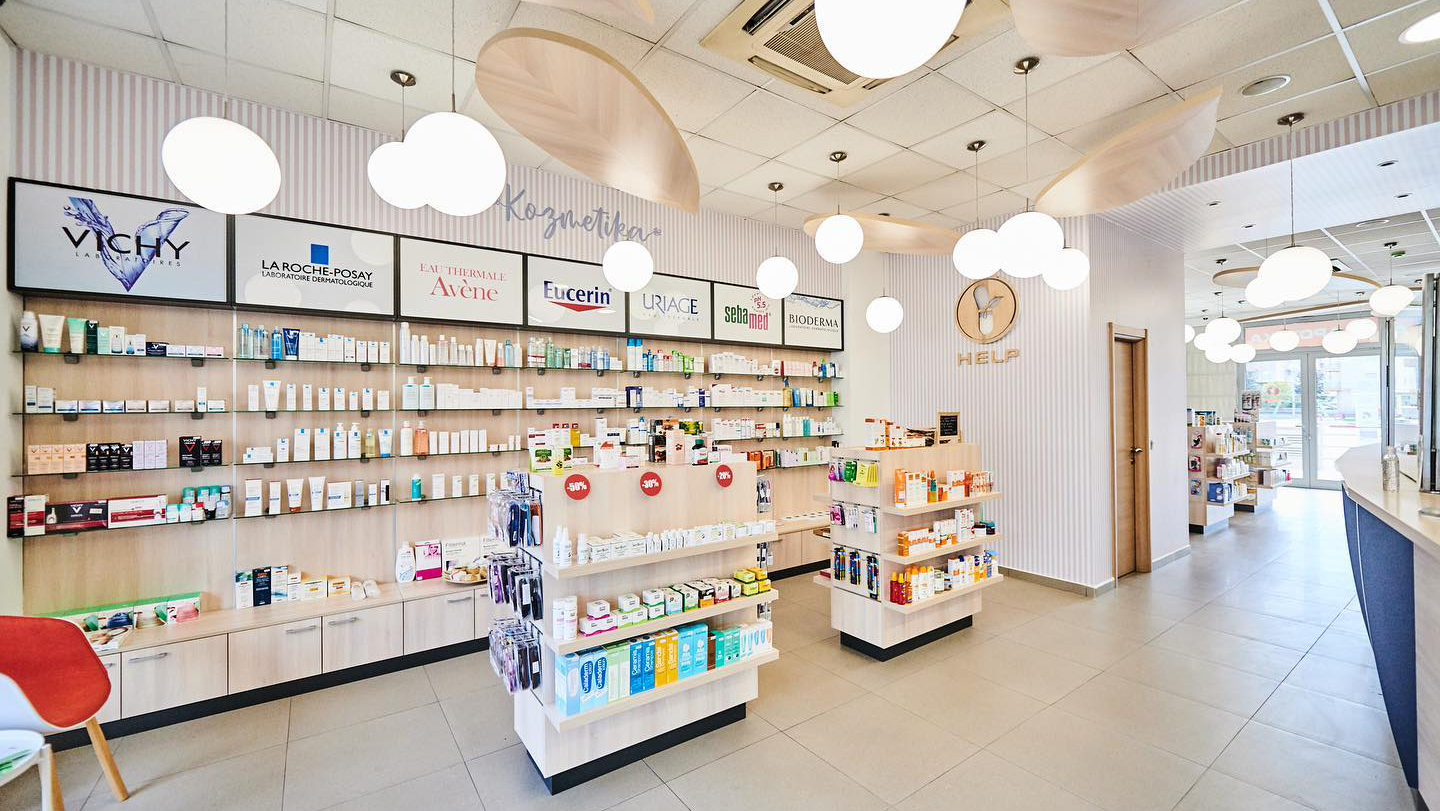 Našim pacijentima obezbjeđujemo širok asortiman ljekova, parafarmaceutskih proizvoda i kozmetike, među kojima izdvajamo poznate brendove: Vichy, Uriage, La Roche Posay, Avene, Eucerin, Sebamed, Bioderma, Dermedic, Guam, Dr Haucha, Lerbolario, Dr Grandel i druge, kao i: hranu za bebe i opremu za bebe i majke, anatomsku obuću, anatomske uloške i kozmetiku za stopala, medicinska pomagala poznatih svjetskih proizvođača Bauerfainder i LP, koje karakteriše široka i raznovrsna ponuda ortoza, bandaža i steznika za lakše i teže povrede kao i štake, štapove, antidekubitalne dušeke i nastavke za WC šolju za starije i nepokretne osobe.
